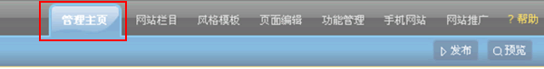 1、登陆后台控制中心,进入建站宝盒后,点击“管理主页