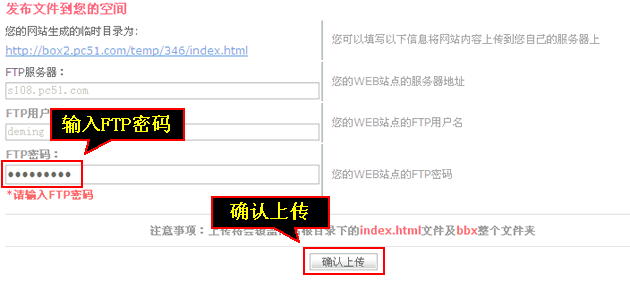 如果是独立购买的建站宝盒,还需要输入ftp服务器中的网站目录等信息,如不清楚请保持原样,或者咨询主机提供商业。