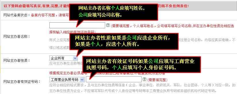 备案信息请如实完整填写,否则信息产业部不给予通过。